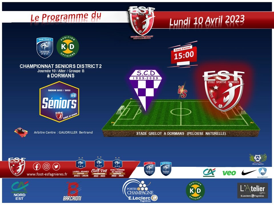 Au Stade Grelot de Dormans, sur pelouse naturelle, Coup d'envoi 15h00.