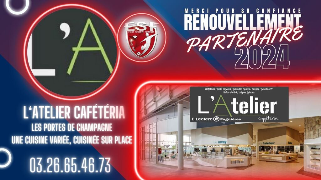 L' Etoile Sportive de Fagnières est heureuse de vous annoncer le renouvellement du Partenariat avec 𝙇'𝘼𝙏𝙀𝙇𝙄𝙀𝙍 𝘾𝘼𝙁𝙀𝙏𝙀𝙍𝙄𝘼.