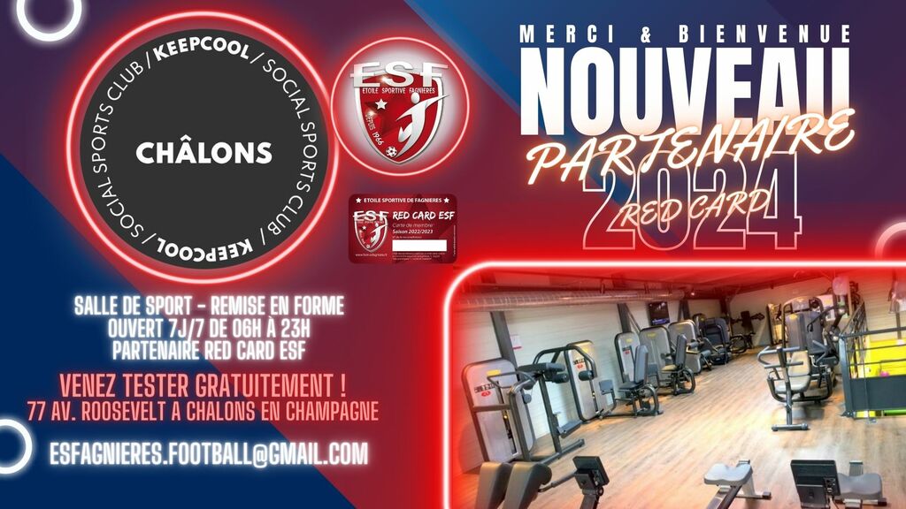 L' Etoile Sportive de Fagnières en partenariat avec LA Franchise Française de 𝐫𝐞𝐦𝐢𝐬𝐞 𝐞𝐧 𝐟𝐨𝐫𝐦𝐞, Keep Cool Châlons-en-Champagne, vous propose des solutions dès aujourd'hui pour vous maintenir en forme avec une équipe très sympathique qui pourra vous conseiller !