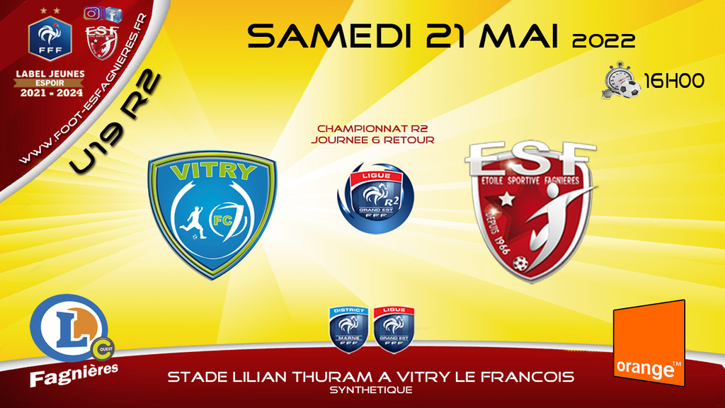 Championnat U19 Ligue R2 , 6ème journée / Contre VITRY FC