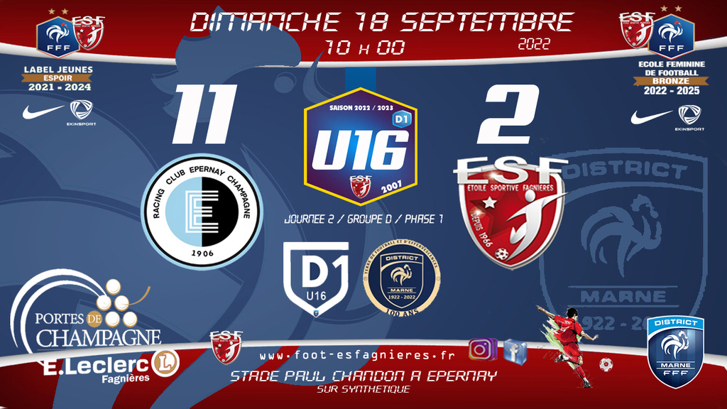 U16D1 - J2 Championnat D1 - Epernay Rcc Vs ESF U16D1