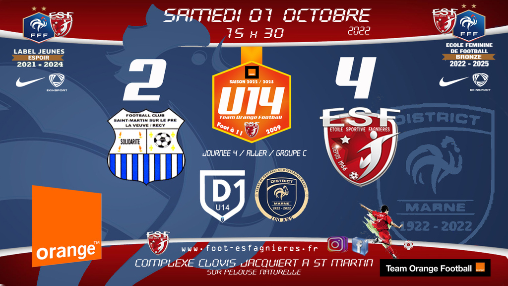 Championnat U14 District 1, 4ème journée / Contre SAINT MARTIN/LA VEUVE FC