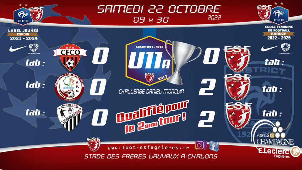 1er tour de Challenge Daniel Monclin pour nos jeunes U11A à Châlons, début des matchs à 10h00.