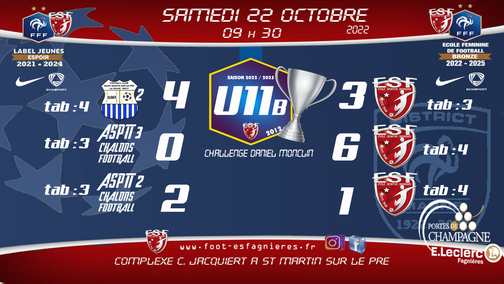 Challenge Daniel Monclin pour nos jeunes U11B à St Martin sur le Pré, début des matchs à 10h00.