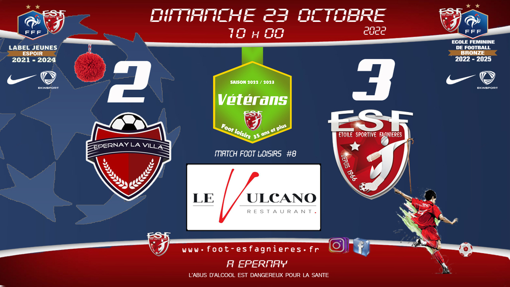 8ème match pour nos Vétérans vs Epernay La Villa à Epernay le dimanche 23 octobre 2022, coup d'envoi 10h00.