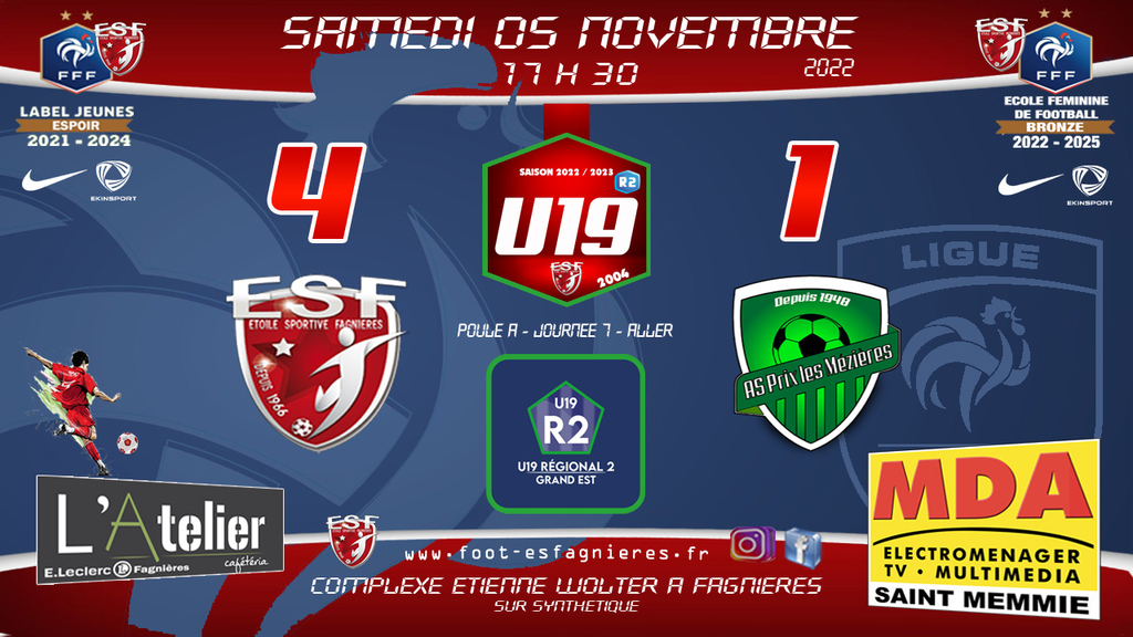 Championnat U19 Ligue R2 , 7ème journée / Contre PRIX LES MÉZIÈRES AS