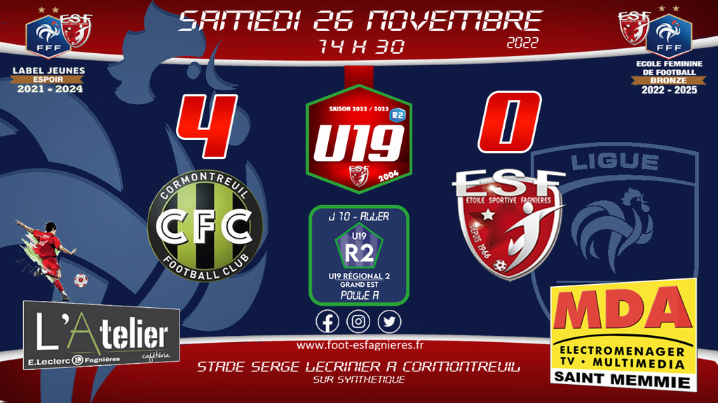Championnat U19 Ligue R2 , 10ème journée / Contre CORMONTREUIL FC