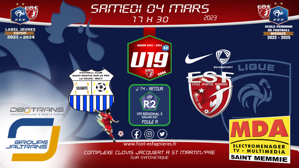 Championnat U19 Ligue R2 , 14ème journée / Contre SAINT MARTIN/LA VEUVE FC