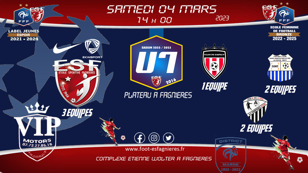 Rendez vous à ??H?? (non déterminé à cet instant) au complexe de ?? (non déterminé à cet instant) pour les joueurs des 3 équipes U6/U7 convoqués