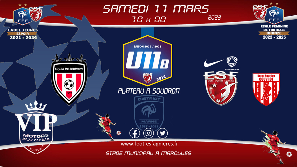 Rendez vous à ??H?? au complexe de Fagnières pour les joueurs U11B de la Team VIP Motors.