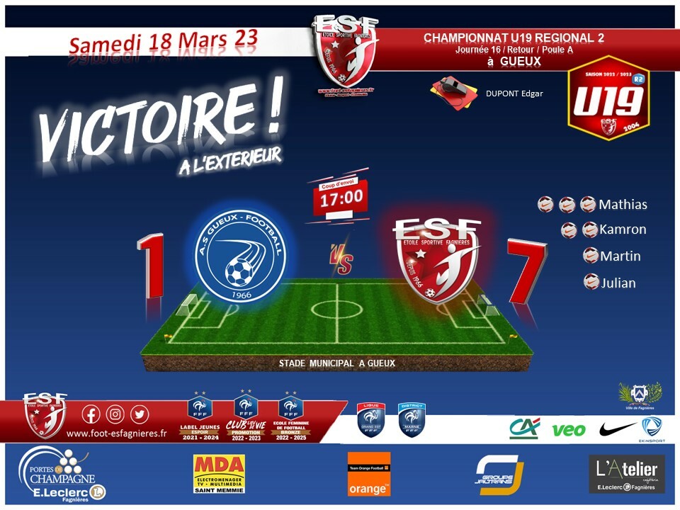 U19R2 - J16 Championnat - Gueux As vs ESF19