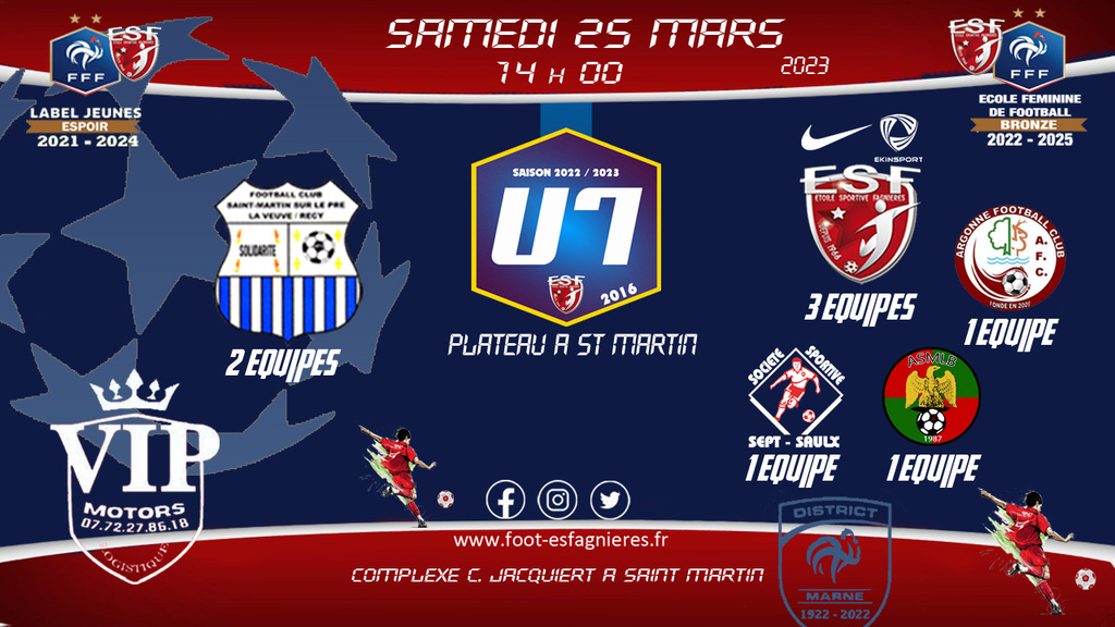 Rendez vous à ??H?? (non déterminé à cet instant) au complexe de ?? (non déterminé à cet instant) pour les joueurs des 3 équipes U6/U7 convoqués