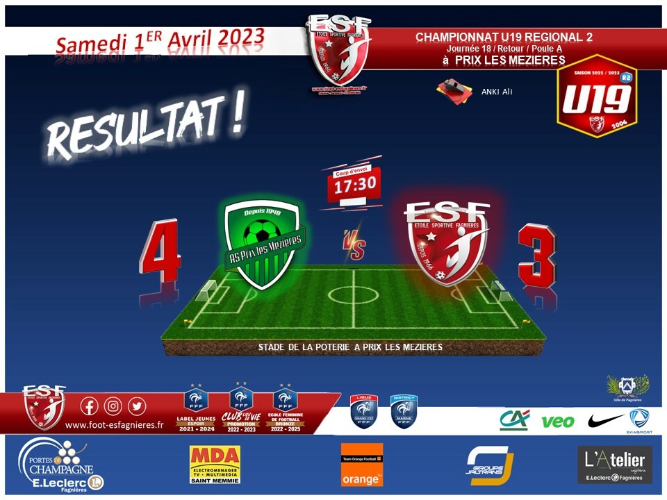 U19R2 - J18 Championnat - Prix les Mezières As vs ESF19
