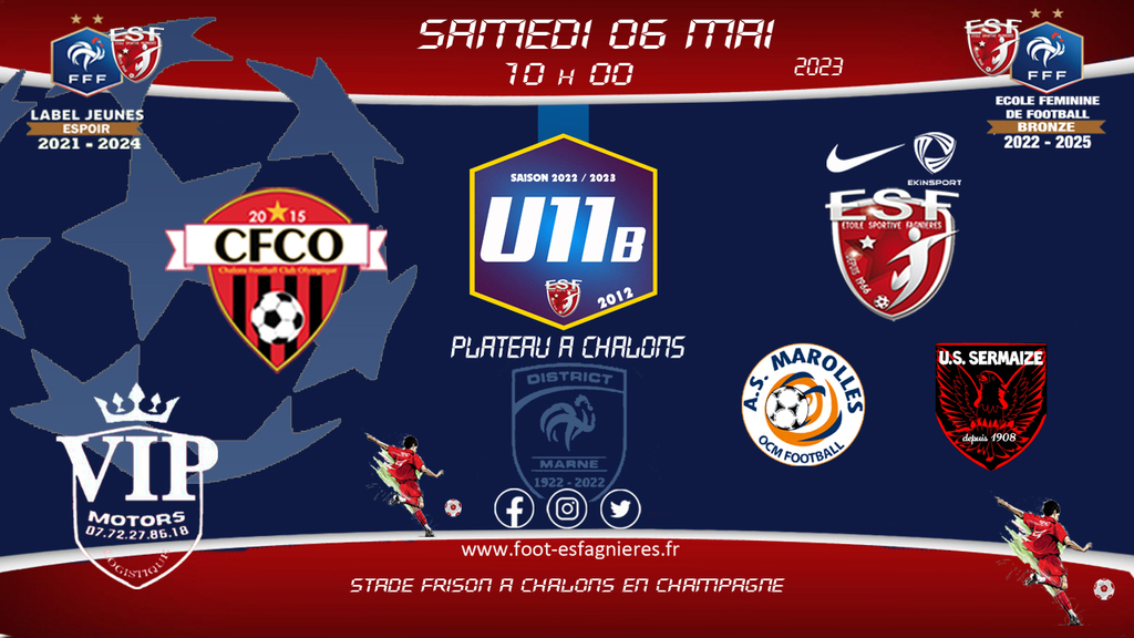 Rendez vous à ??H?? au stade de Frison pour les joueurs U11B de la Team VIP Motors.