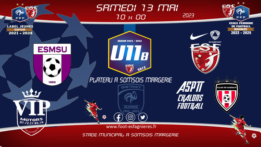 Rendez vous à ??H?? au complexe Etienne Wolter de Fagnières pour les joueurs U11B de la Team VIP Motors.