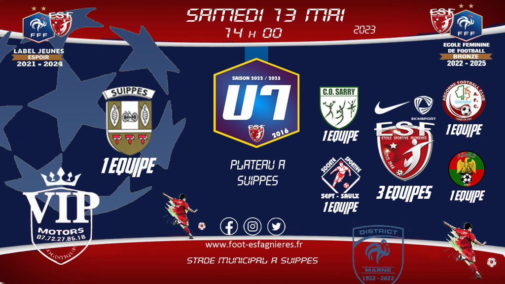 Rendez vous à ??H?? (non déterminé à cet instant) au complexe de ?? (non déterminé à cet instant) pour les joueurs des 3 équipes U6/U7 convoqués