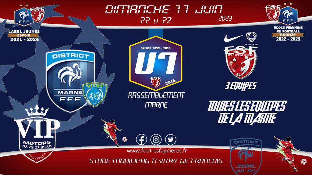 Rendez vous à ??H?? (non déterminé à cet instant) au complexe de ?? (non déterminé à cet instant) pour les joueurs des 3 équipes U6/U7 convoqués
