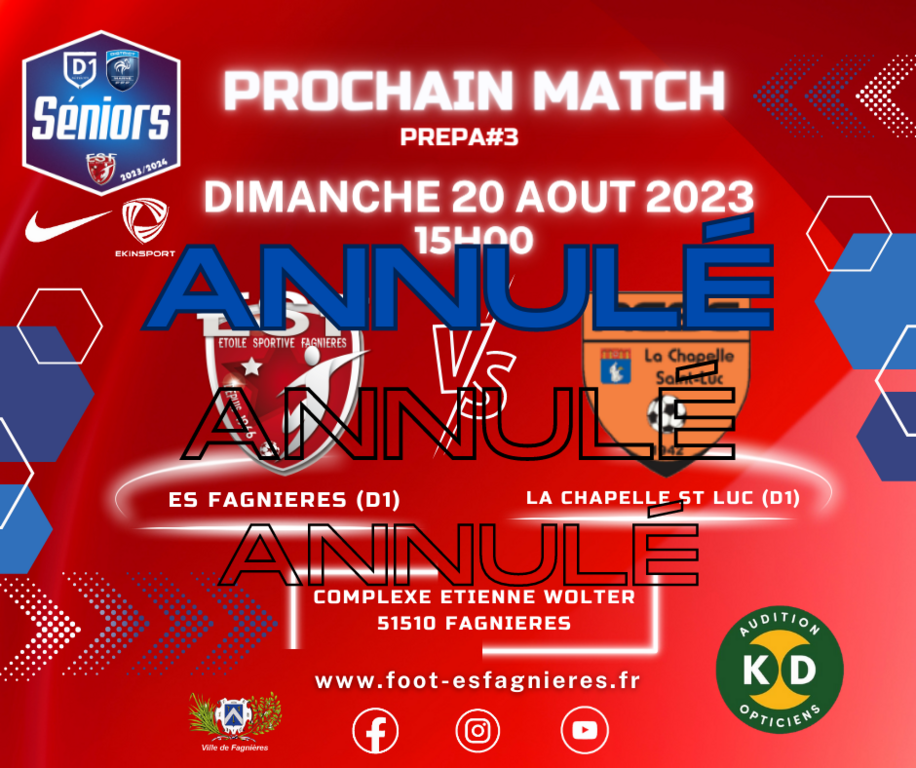 Séniors D1 - MATCH ANNULE - Es Fagnières (D1) vs La Chapelle St Luc (D1)