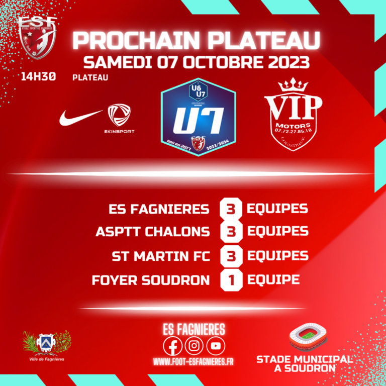PLATEAU U6/U7 A 14H30 AU STADE MUNICIPAL DE SOUDRON.