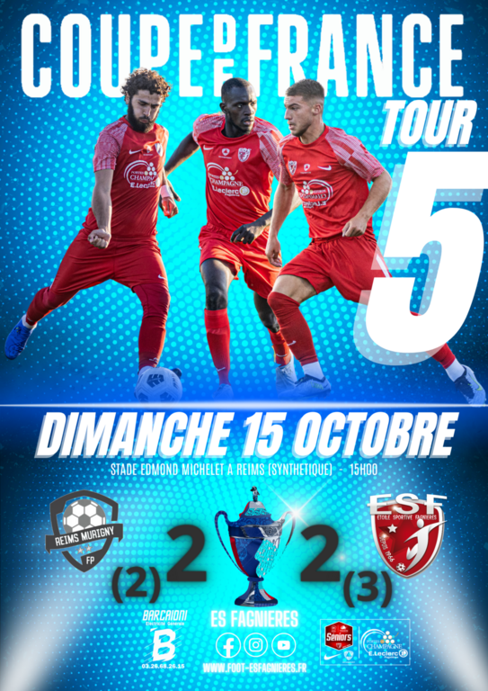 L'@Etoile Sportive de Fagnières fait désormais partie des 40 dernières équipes de la région Grand Est, rendez vous le 18 octobre pour connaître le prochain adversaire !!!