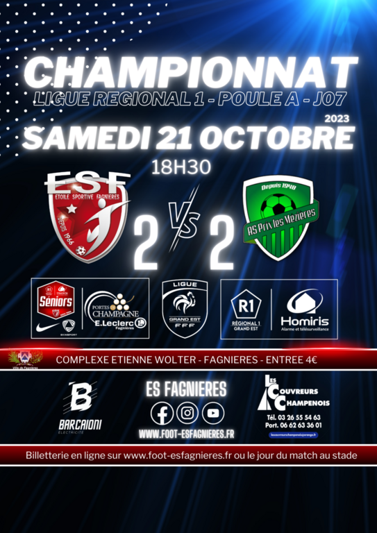 Réception de Prix les Mézières ce samedi 21 octobre au complexe Etienne Wolter de Fagnières, pour un match très important pour se relancer en Championnat Ligue Régional 1 Homiris...