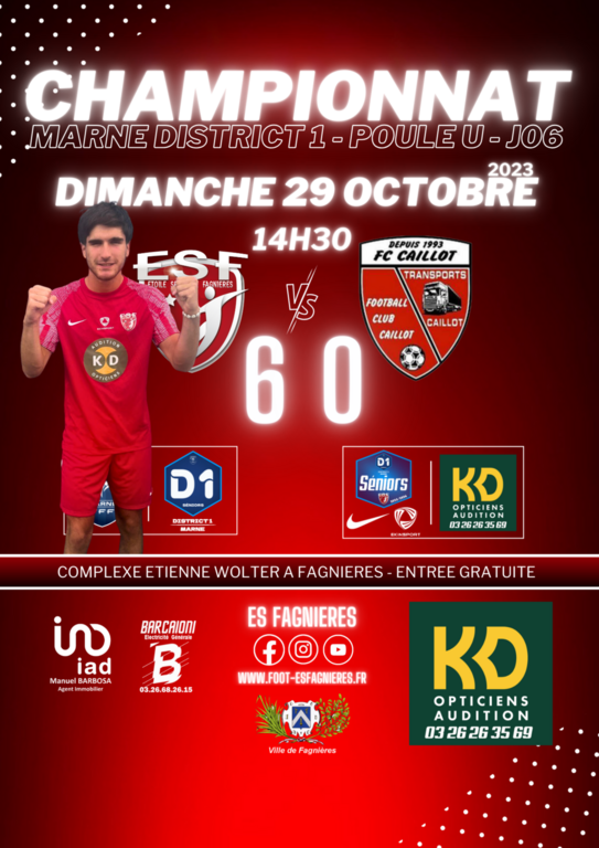 ATTENTION coup d'envoi à 14h30 au complexe Etienne Wolter de Fagnières