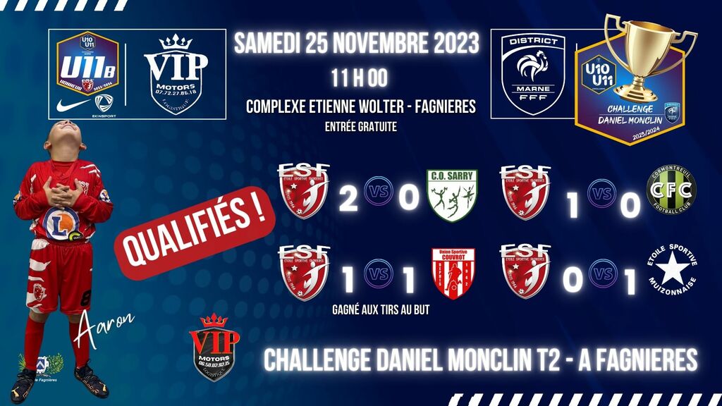 Bravo à nos U11B qui se qualifie également avec 2 victoires, 1 nul (gagné au tirs au but) & 1 défaite.