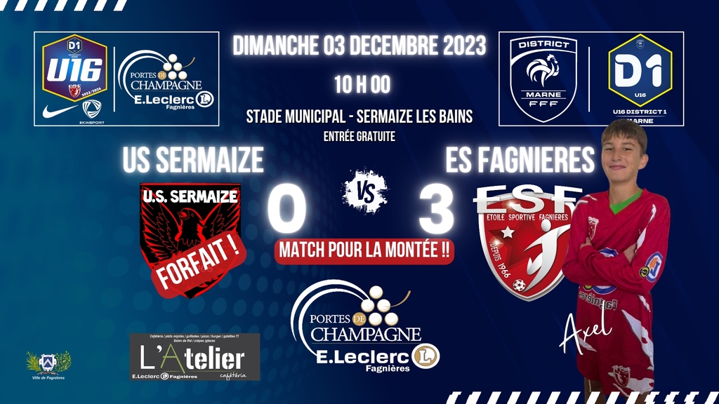 Après 2 reports consécutifs l' Us Sermaize déclare forfait, ce qui propulse nos U16 de la 4eme a la 2eme place du classement pour ce dernier match de phase 1 !!