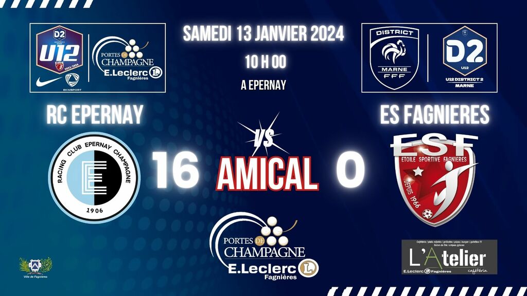 Match Amical à Epernay pour nos jeunes U12, coup d'envoi 10h00.