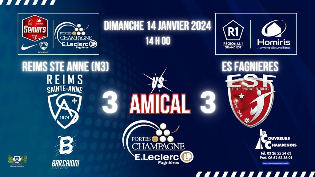 1er match de reprise 2024, match de préparation face a Reims Ste Anne (N3) en vue de la reprise de Championnat vs Chaumont Fc le 28 janvier 2024.