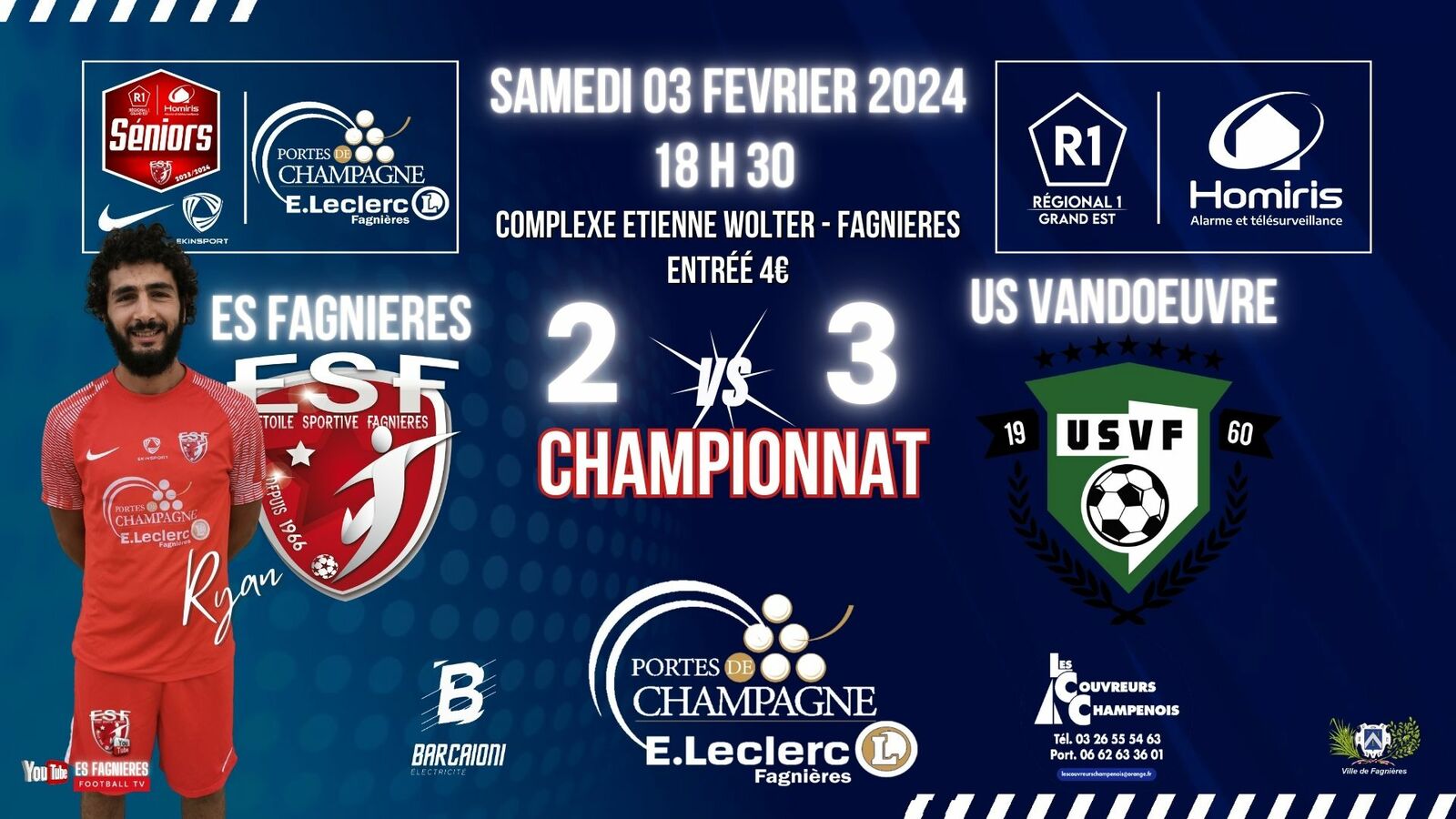 SAMEDI 03 FEVRIER 2024 - Complexe Etienne Wolter de Fagnières - Entrée 4€