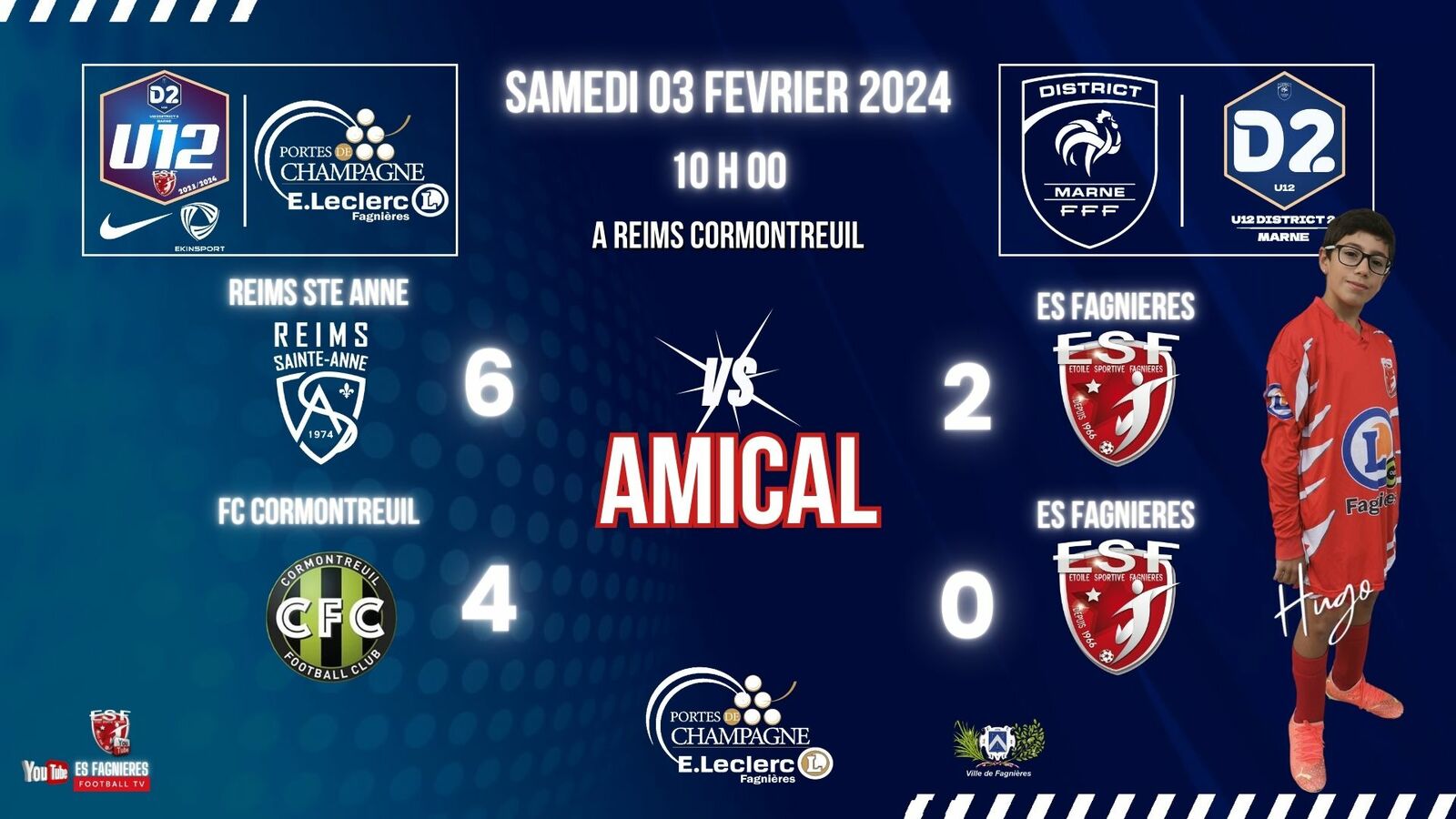 Match Amical à Reims Cormontreuil pour nos jeunes U12, coup d'envoi ?? h ??.