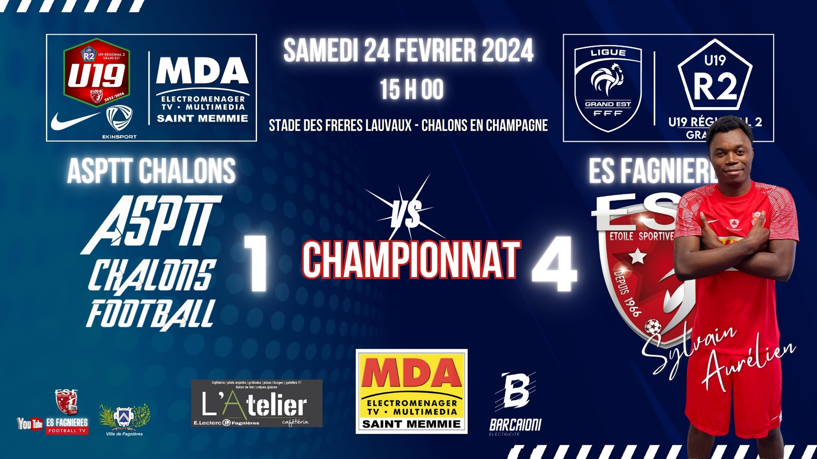Une belle Victoire pour nos jeunes U19 en Championnat chez nos voisins du jour l' ASPTT Châlons Foot.