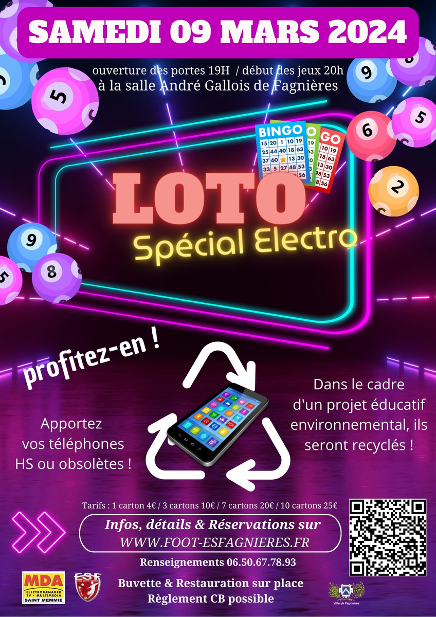 Dans le cadre d'un projet éducatif environnemental auprès des jeunes Fagnierots, nous profitons de cette soirée pour collecter vos téléphones, chargeur et kit oreillette obsolète ou HS afin d'être totalement recyclés...