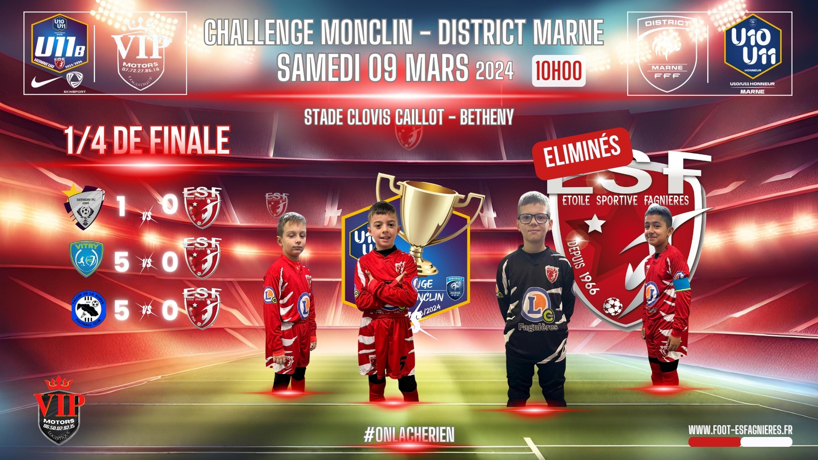 Un gros 1/4 de Finale attend nos U11B ce samedi en déplacement a Betheny qui devront affronter Betheny Formation Club , FC Vallée de la suippe & Vitry FC pour se qualifier !