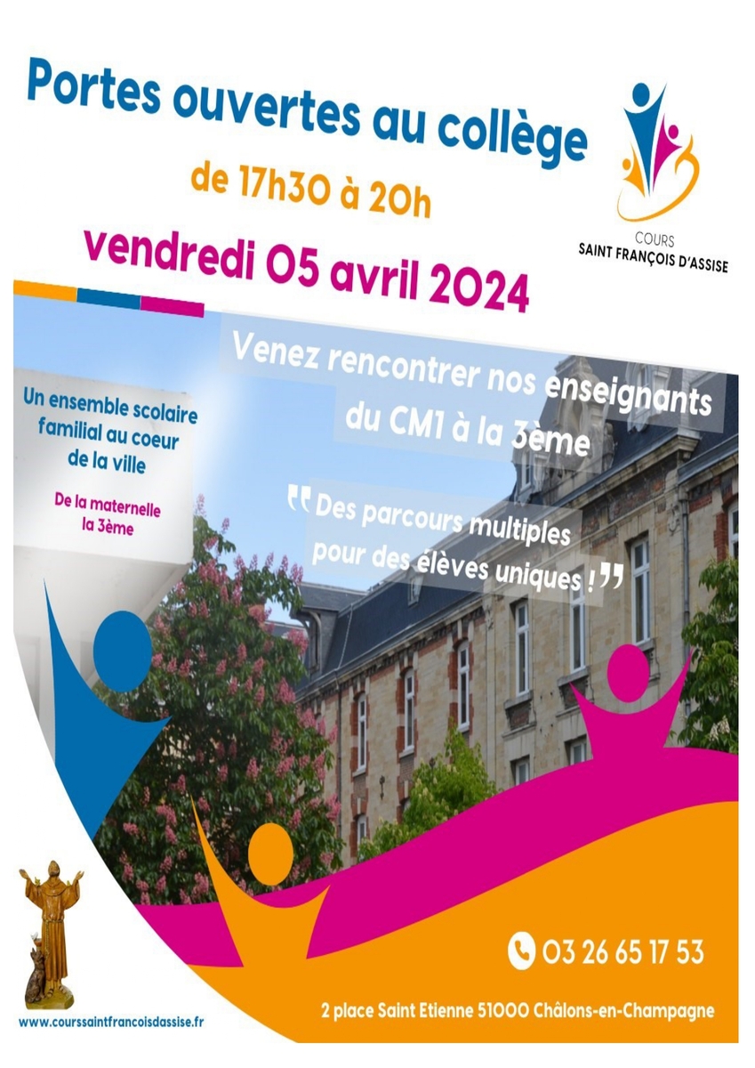 Dans cet optique, n'hésitez pas à vous rendre à la journée Portes Ouvertes qui aura lieu ce Vendredi 05 Avril 2024 de 17h30 à 20h.