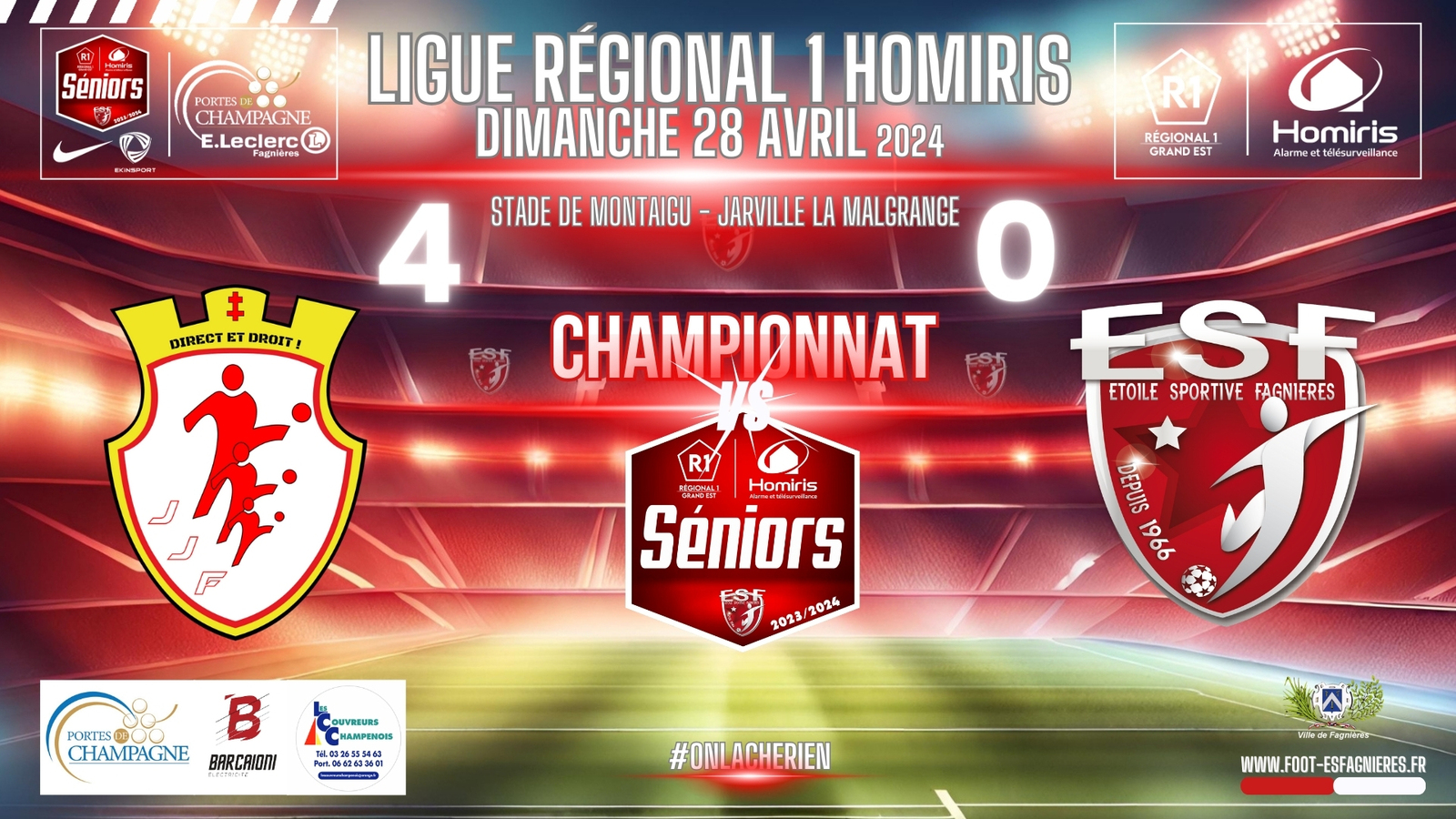 Jarville Jeunes Football (10ème / 22pts / 21 matchs joués) vs Etoile Sportive de Fagnières Officiel (8ème / 25pts / 21 matchs joués).