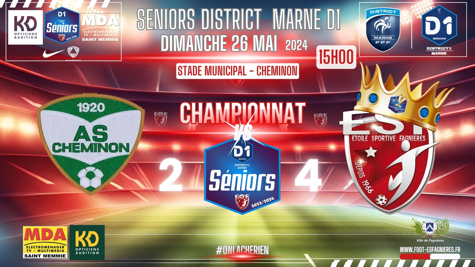 CHAMPIONNAT SENIORS MARNE DISTRICT 1, 21ème journée / Contre CHEMINON AS