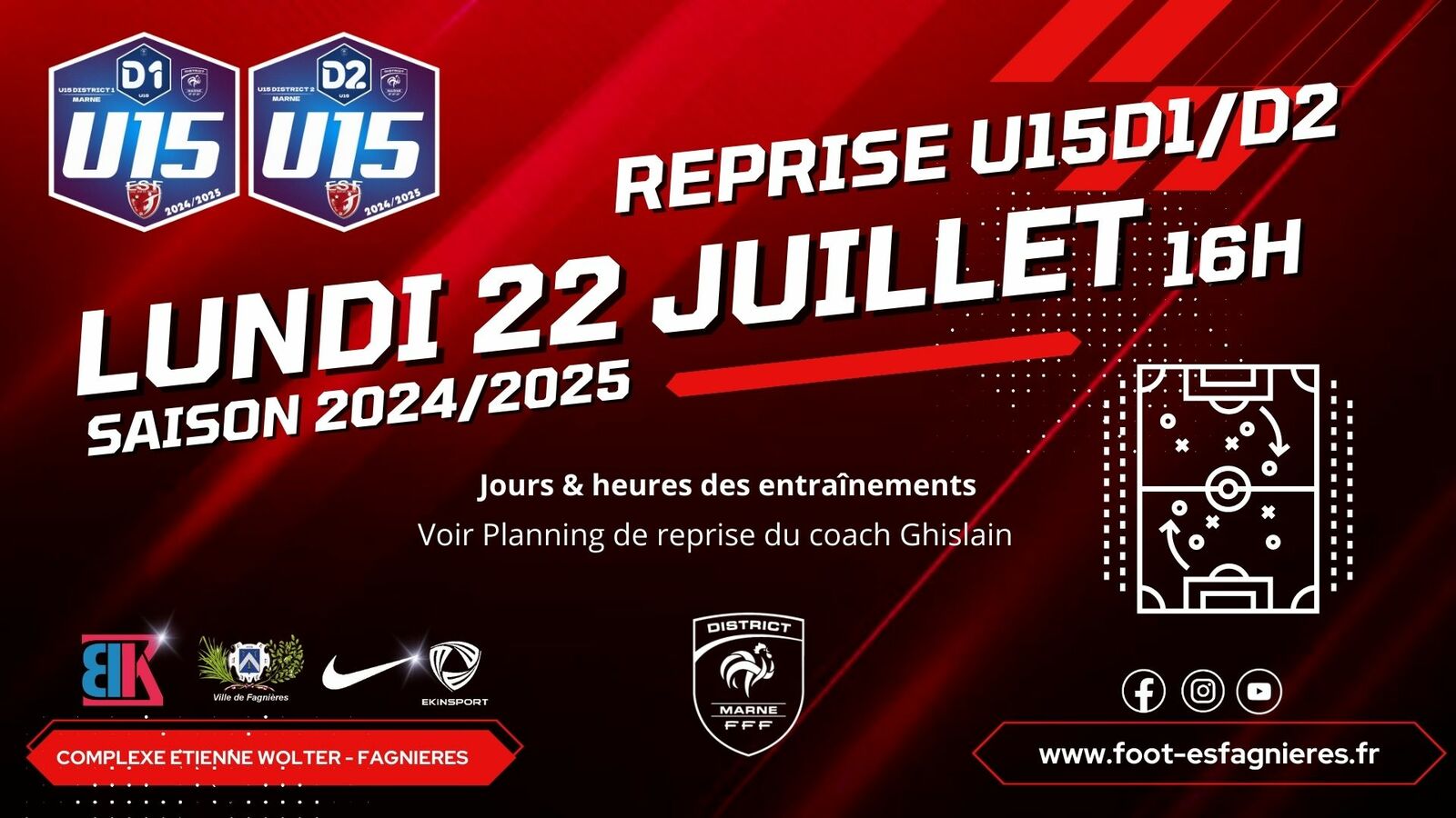 A noter dans vos agendas, les Groupes U15 reprendront la nouvelle saison 2024/2025 le Lundi 22 juillet à 16h !