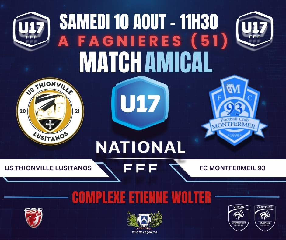 Fagnières accueillera une belle affiche de U17 National ce Samedi sur le terrain synthétique du Complexe Sportif Etienne Wolter.