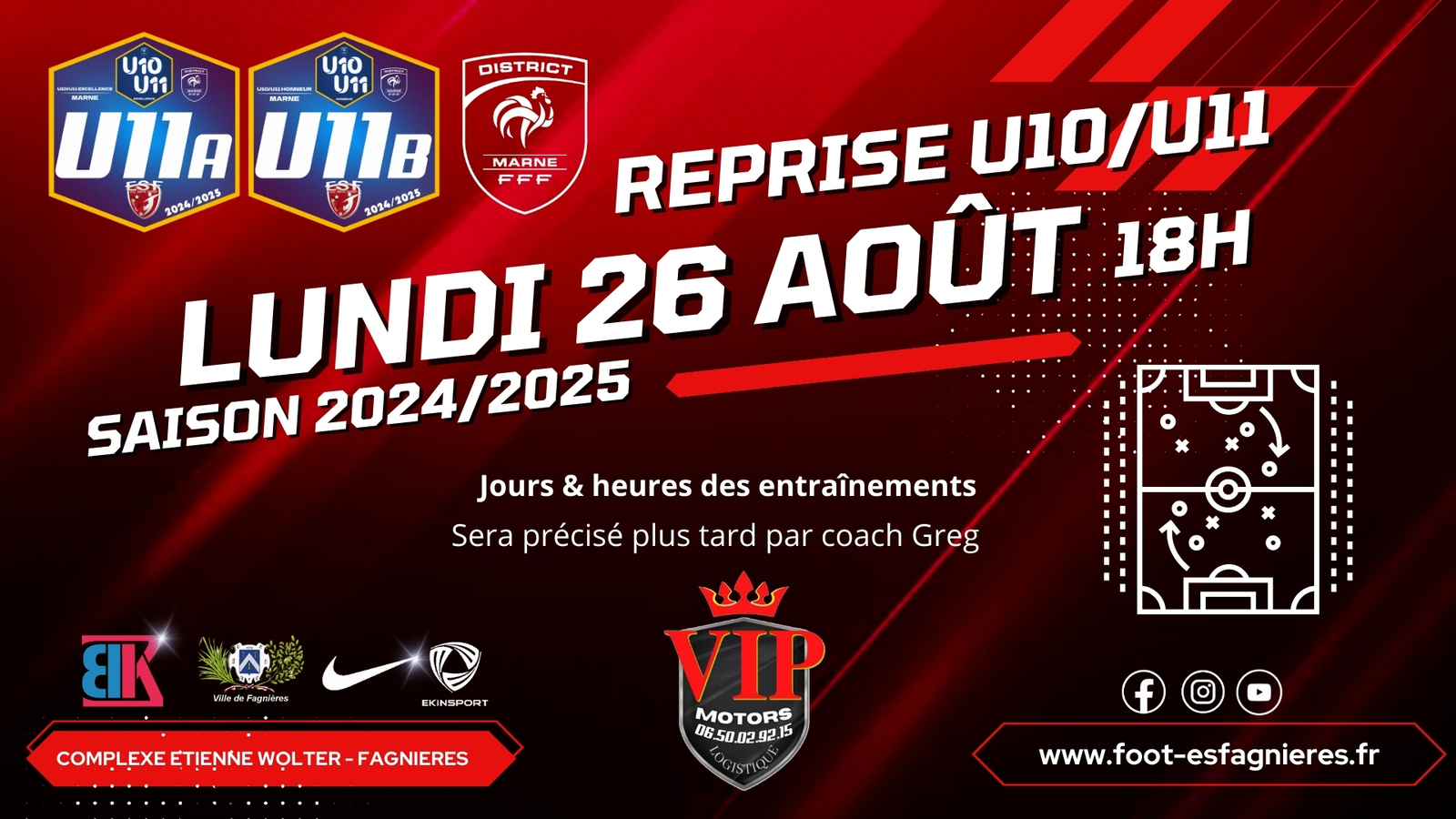 A noter dans vos agendas, les Groupes U10/U11 reprendront la nouvelle saison 2024/2025 le Lundi 26 Août à 18h !