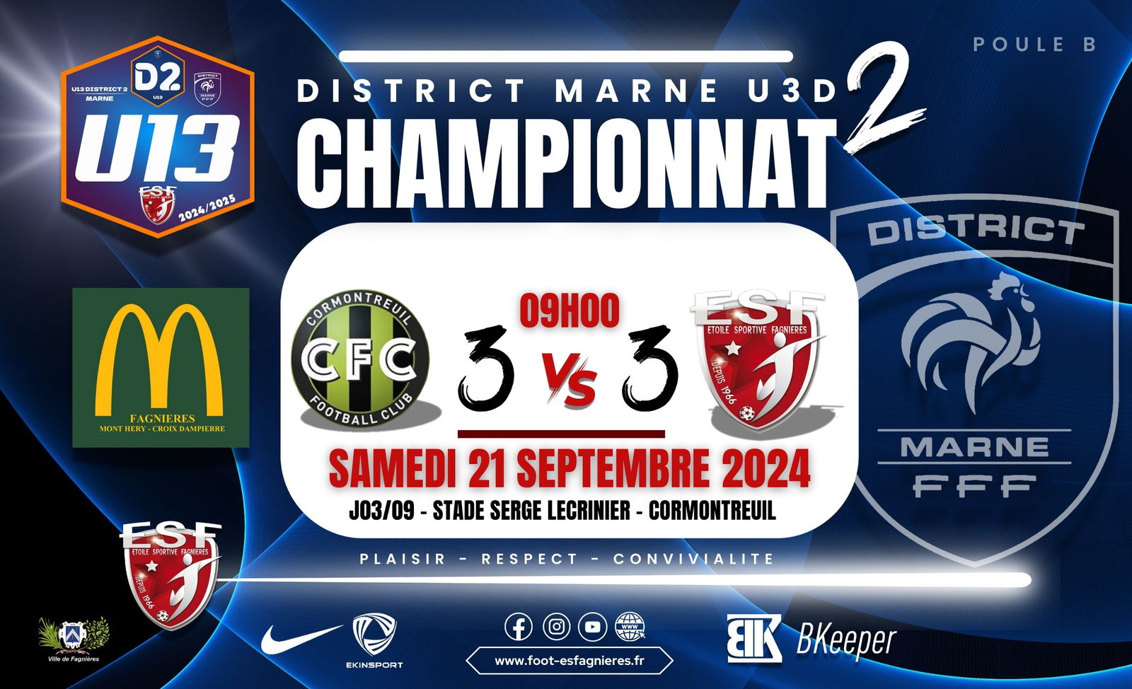 CHAMPIONNAT MARNE U13D2, 3ème journée / Contre CORMONTREUIL FC