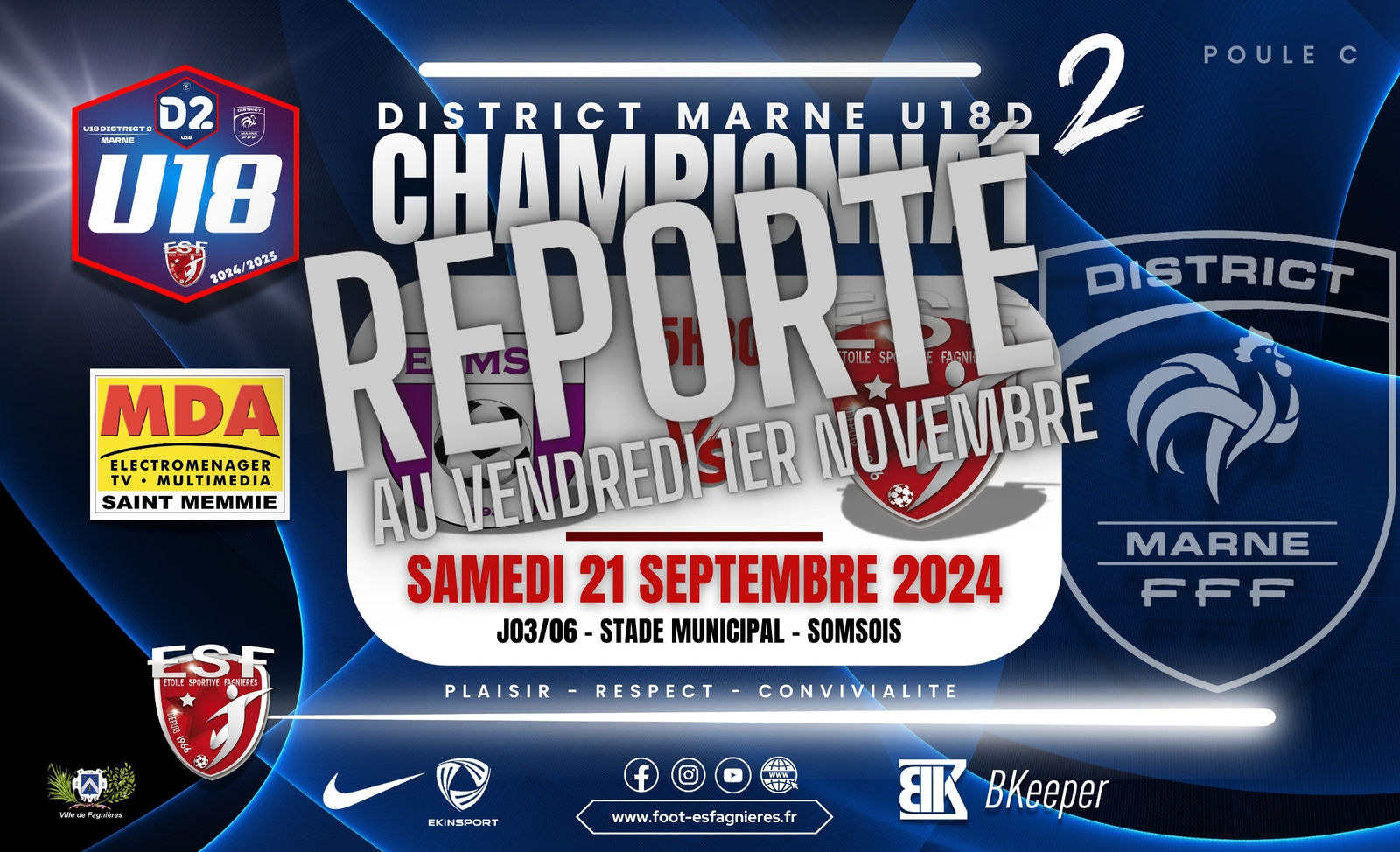 MATCH REPORTE AU VENDREDI 1ER NOVEMBRE 2024