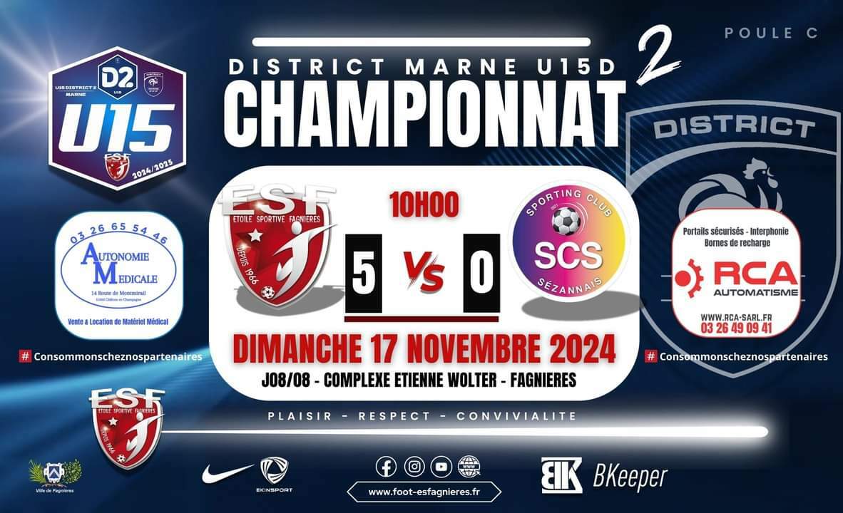 CHAMPIONNAT MARNE U15D2, 8ème journée / Contre SEZANNE SC