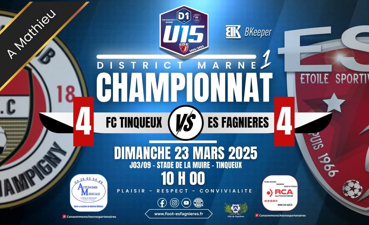 CHAMPIONNAT MARNE U15D1, 3ème journée / Contre TINQUEUX CHAMPIGNY FC