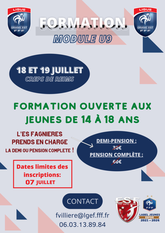 L'Etoile Sportive de Fagnières prends en charge la demi ou pension complète !