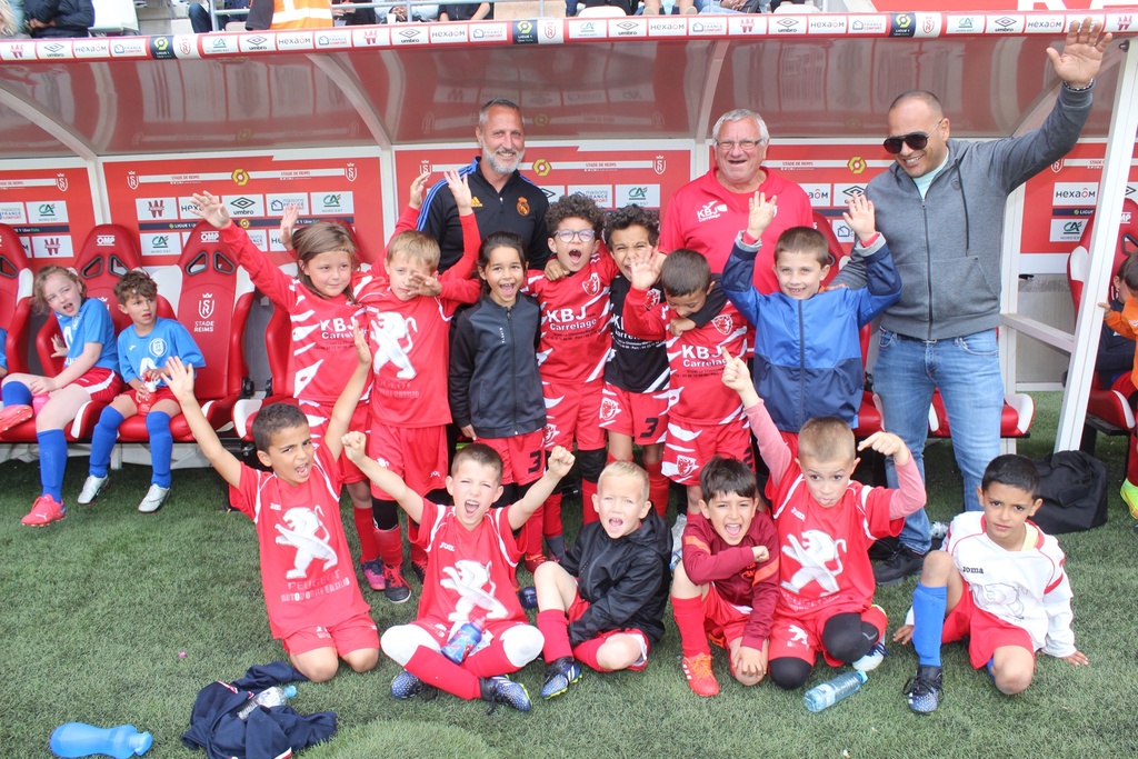 Nos très jeunes footballeurs (U6 / U7) ont eut la chance de jouer comme les Pros sur la pelouse du Stade de Reims, de profiter des animations organisées par le District Marne de Football et de rencontrer la mascotte "Auguste" lors de cette journée inoubliable !