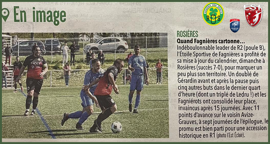 Bel article du journal local L'Est éclair Troyes lors du match de notre groupe R2 dimanche dernier face à Rosières Omni Sports.