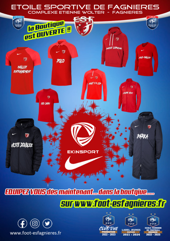 Besoin d'un coupe-vent, un maillot, une veste ou autre, vous pouvez désormais commander directement chez notre équipementier Ekinsport notre gamme de vêtements complémentaires ES Fagnières !