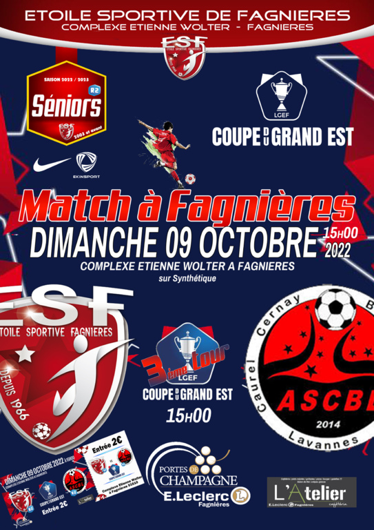 Un 3ème tour équilibré attends le groupe de Faycal avec cependant le petit avantage du terrain pour nos Fagniérots qui joueront au Complexe sportif Etienne Wolter de Fagnières, 𝙑𝙚𝙣𝙚𝙯 𝙣𝙤𝙢𝙗𝙧𝙚𝙪𝙭 !